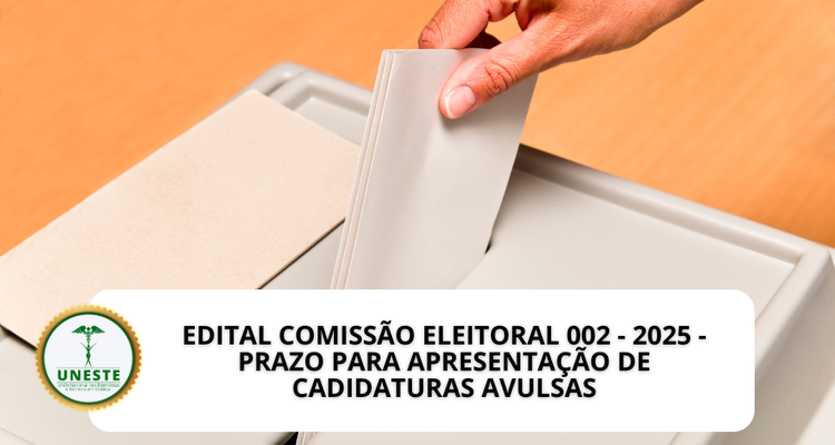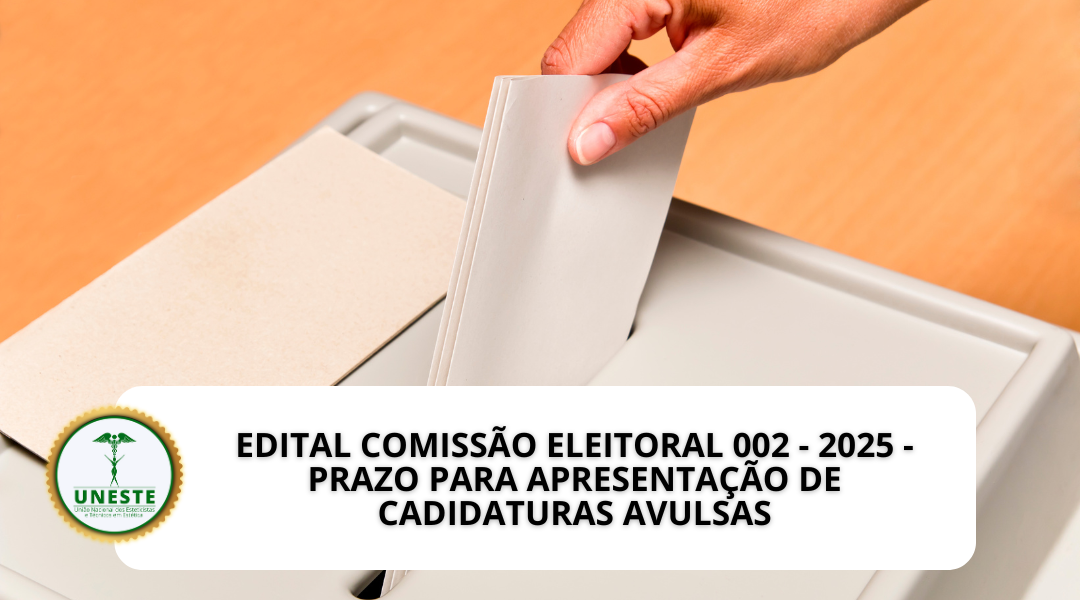 A Comissão Eleitoral daUnião Nacional dos Esteticistas e Técnicos em Estética (UNESTE)informa a todos os associados que, conforme deliberado naAta de Reunião nº 001/2025, a etapa de inscrição de chapas completas para o triênio 2026/2028 foi encerrada sem registros e declaradaDESERTA.